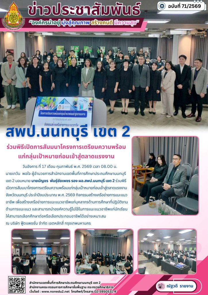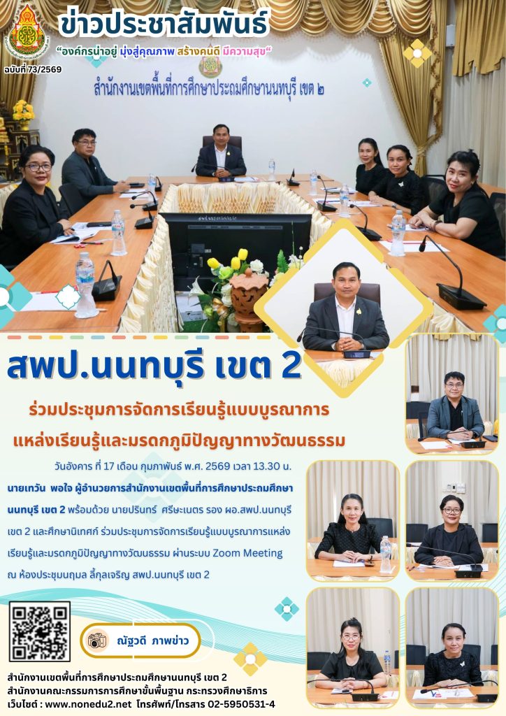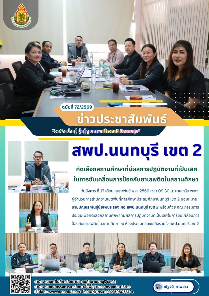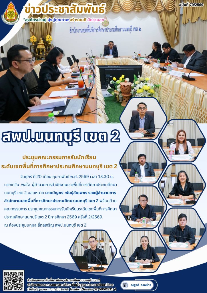 ประชุมคณะกรรมการรับนักเรียนระดับเขตพื้นที่การศึกษาประถมศึกษานนทบุรี เขต 2 ปีการศึกษา 2569