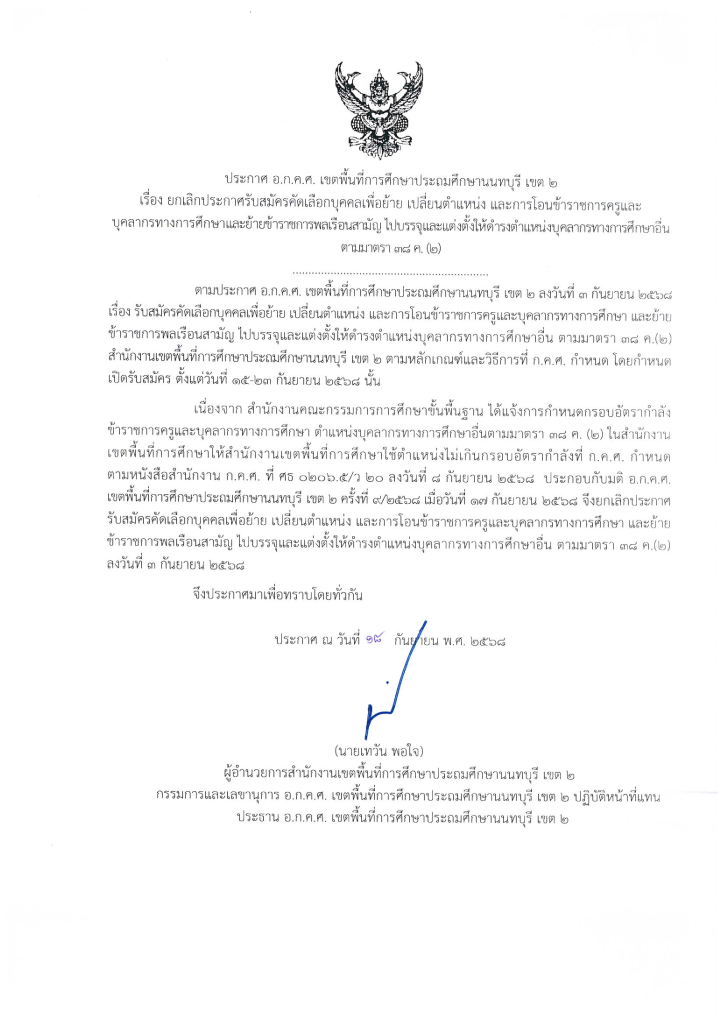 ประกาศ อ.ก.ค.ศ. เขตพื้นที่การศึกษาประถมศึกษานนทบุรี เขต