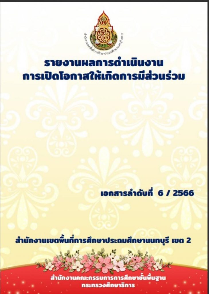 รายงานผลการดำเนินงาน การเปิดโอกาสให้เกิดการมีส่วนร่วม Leave a Comment / เอกสารเผยแพร่ / By กลุ่มนิเทศ ติดตาม และประเมินผลการจัดการศึกษา https://online.fliphtml5.com/jbzwp/hucy/
