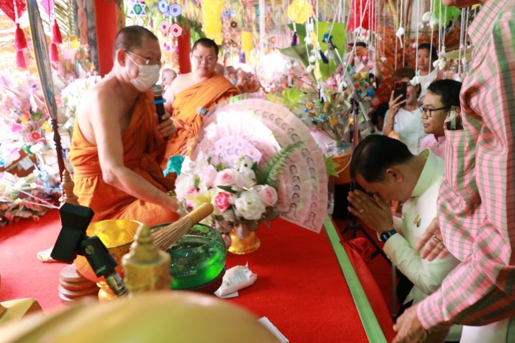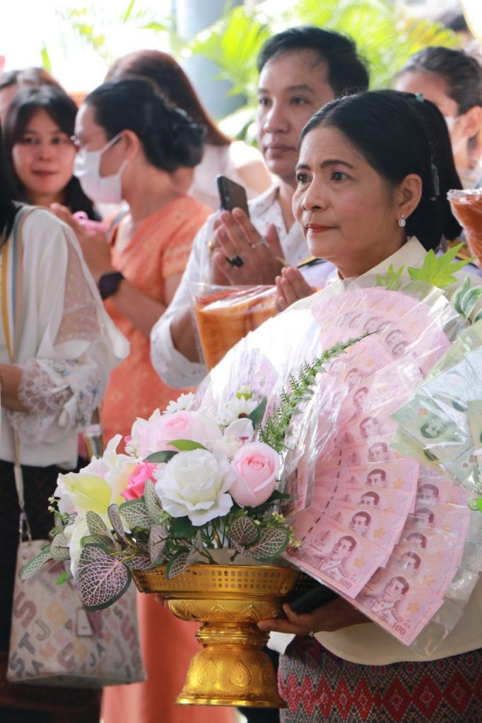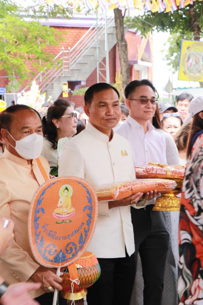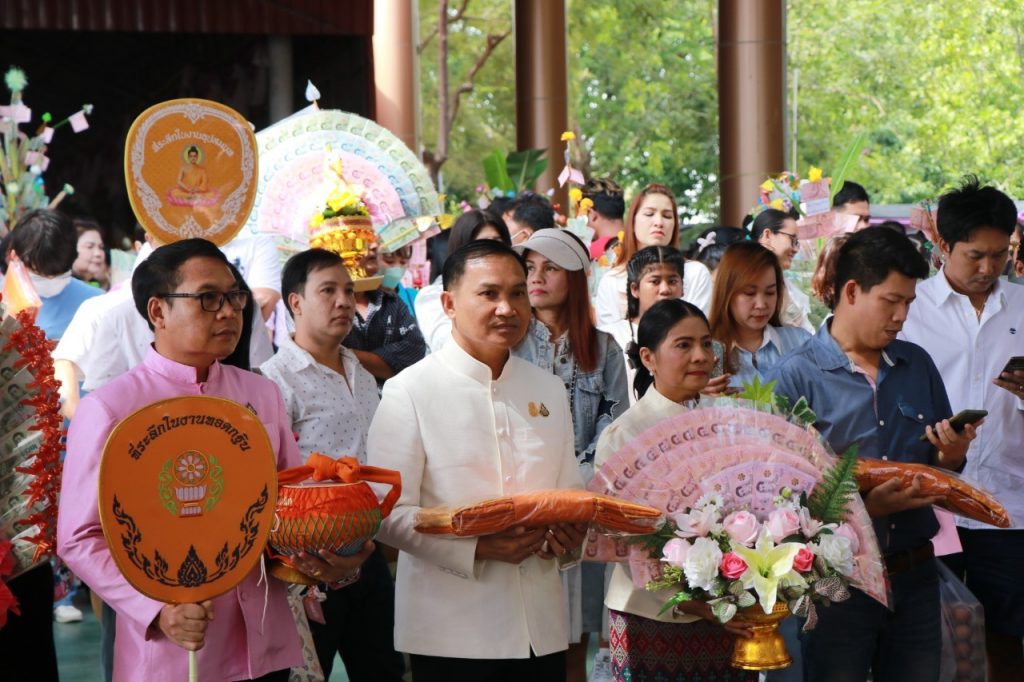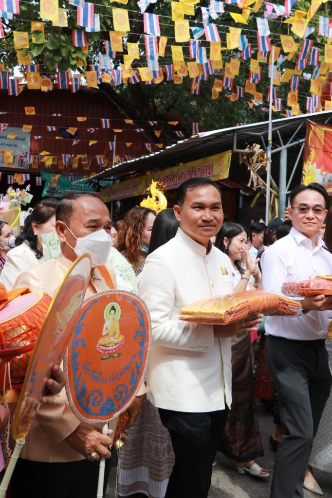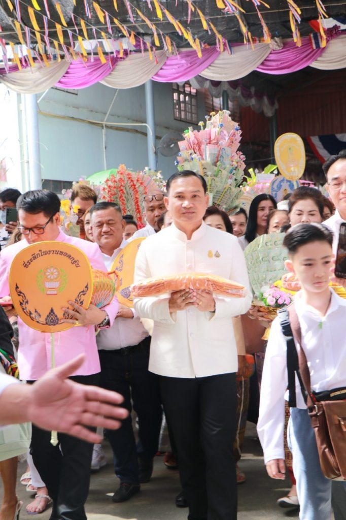 วันอาทิตย์ ที่ 19 พฤศจิกายน พ.ศ.2566 เวลา 10.30 น. นายเทวัน พอใจ ผู้อำนวยการสำนักงานเขตพื้นที่การศึกษาประถมศึกษานนทบุรี เขต 2 พร้อมด้วย นายปรินทร์ ศรีษะเนตร รอง ผอ.สพป.นนทบุรี เขต 2 ข้าราชการครูและบุคลากรทางการศึกษา ร่วมทอดกฐินสามัคคี ประจำปี 2566 เพื่อสมทบทุนสร้างอุโบสถและทำนุบำรุงพระพุทธศาสนา ณ วัดเชิงเลน ตำบลท่าอิฐ อำเภอเมือง จังหวัดนนทบุรี
