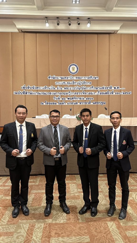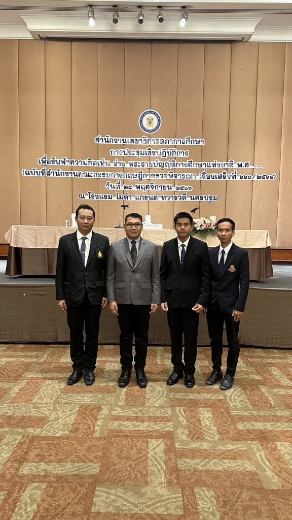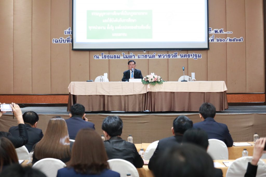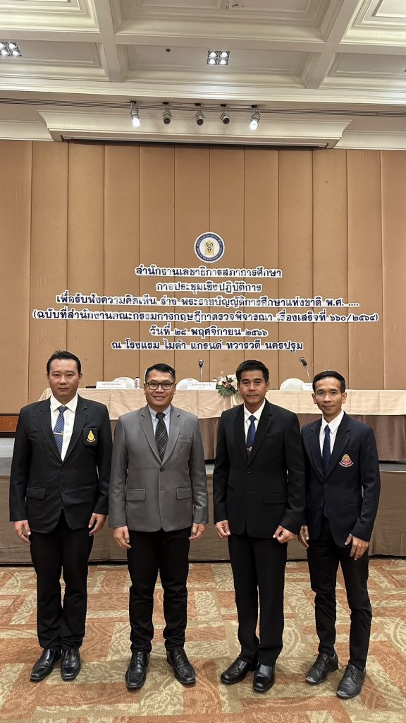 วันอังคาร ที่ 28 พฤศจิกายน 2566 นายเทวัน พอใจ ผู้อำนวยการสำนักงานเขตพื้นที่การศึกษาประถมศึกษานนทบุรี เขต 2 มอบหมาย นายปรินทร์ ศรีษะเนตร รอง ผอ.สพป.นนทบุรี เขต 2 พร้อมด้วย นายสำเริง ยิ้มดี ผอ.รร.บ้านคลองโต๊ะนุ้ย, นายมาณพ แสงงาม ผอ.รร.วัดอินทร์ และ นายปิยวัช สีกันหา ผอ.รร.วัดตำหนักเหนือ(ชื่นวิทยานุสรณ์) เข้าร่วมประชุมเชิงปฏิบัติการเพื่อรับฟังความคิดเห็น ร่าง พระราชบัญญัติการศึกษาแห่งชาติ พ.ศ. ….. (ฉบับที่สำนักงานคณะกรรมการกฤษฎีกาตรวจพิจารณาแล้ว เรื่องเสร็จที่ 660/2564) โดยมี ดร.อรรถพล สังขวาสี ปลัดกระทรวงศึกษาธิการ รักษาราชการแทนเลขาธิการสภาการศึกษา เป็นประธานเปิดการประชุม ณ โรงแรมไมด้าแกรนด์ ทวารวดี จังหวัดนครปฐม