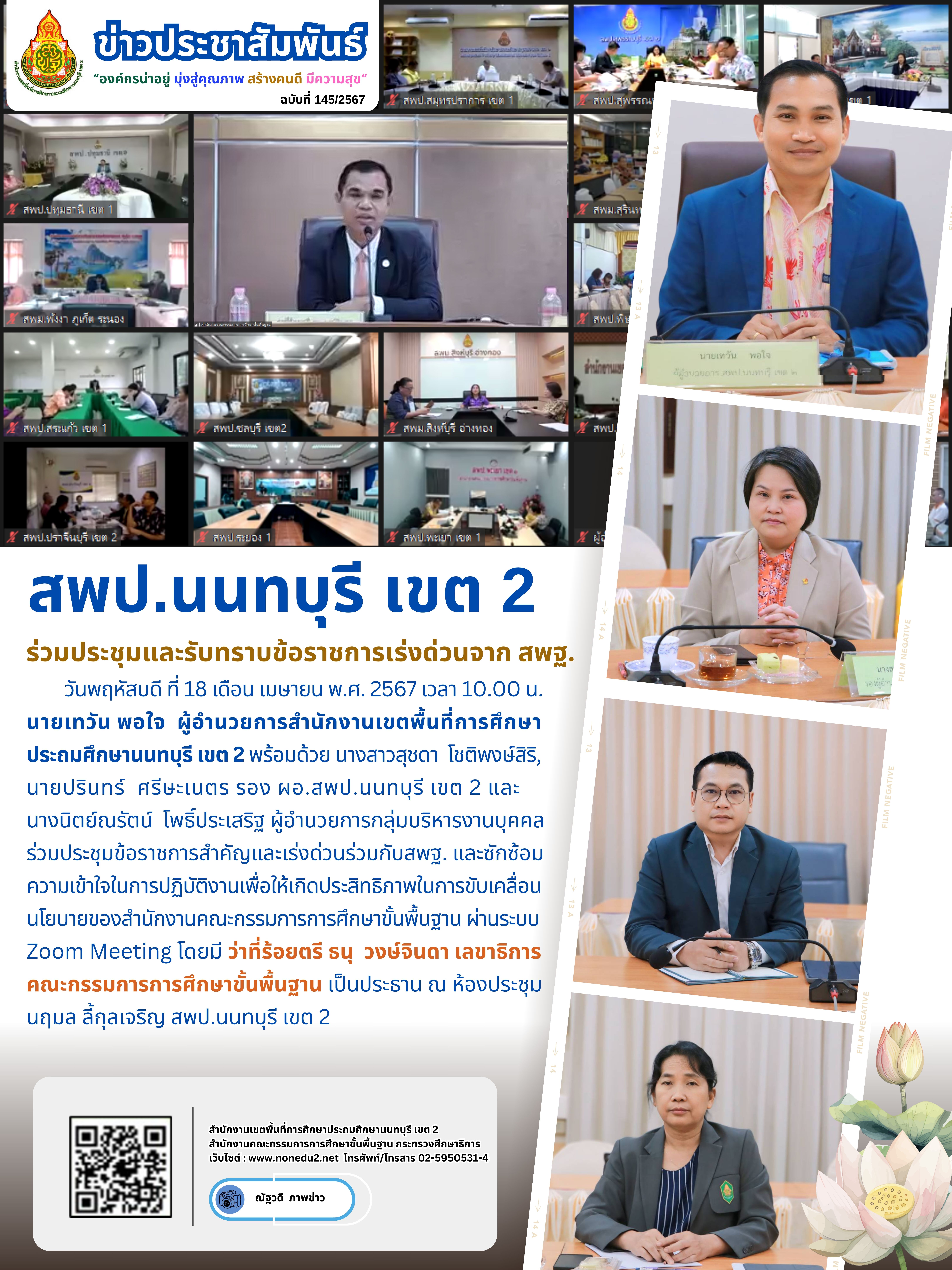 ประชุมบุคลากรสำนักงานเขตพื้นที่การศึกษาประถมศึกษานนทบุรี เขต 2 ครั้งที่ 1/2567
